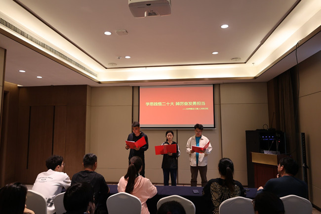 活動中,組織開展了以“學思踐悟二十大,踔厲奮發勇擔當”為主題的學習研討活動,安排黨務干部領學黨的二十大報告,年輕干部誦讀“黨的二十大金句”,紀檢、財務、技術、企管部門代表結合本職工作讀原文分享交流感悟等系列活動,最后一起觀看了小品《坑》。