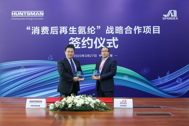 3月27日,連云港杜鐘新奧神氨綸有限公司總經理張斌一行赴亨斯邁亞太園區,與亨斯邁聚氨酯亞太區總裁潘律民、戰略市場總監李濤等進行了合作交流。