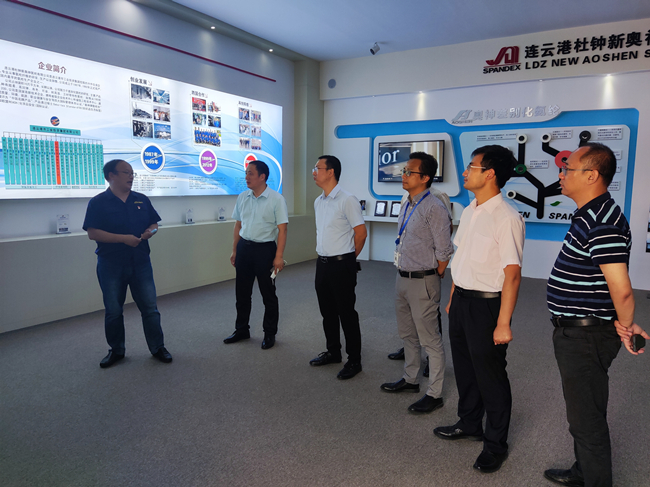 科技鎮(zhèn)長(zhǎng)團(tuán)一行先后參觀了展廳、八期生產(chǎn)線、自動(dòng)包裝線。張斌總經(jīng)理詳細(xì)地介紹了杜鐘氨綸的發(fā)展歷程,公司近年來(lái)研發(fā)的功能性氨綸的主要特點(diǎn)以及后道產(chǎn)品的開(kāi)發(fā)與銷(xiāo)售。在參觀八期生產(chǎn)線的過(guò)程中,張總重點(diǎn)介紹了公司分布式能源的運(yùn)行情況和公司近年來(lái)在生產(chǎn)一線推行智能化、自動(dòng)化的實(shí)踐情況。吳團(tuán)長(zhǎng)一行對(duì)公司注重產(chǎn)品研發(fā)、推行生產(chǎn)智能化與自動(dòng)化方面所做的努力表示肯定,希望下一步持續(xù)發(fā)揮優(yōu)勢(shì),不斷加大研發(fā)投入,為全市新材料板塊發(fā)展壯大貢獻(xiàn)力量。