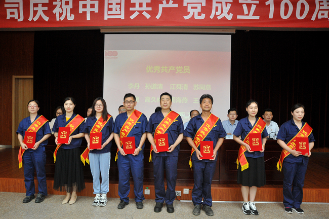 6月29日下午,公司舉辦慶祝中國共產黨成立100周年大會,參加此次會議的有公司黨委委員,領導班子成員,各部門助理以上管理人員、黨員代表,獲獎代表以及黨群工作部全體人員。