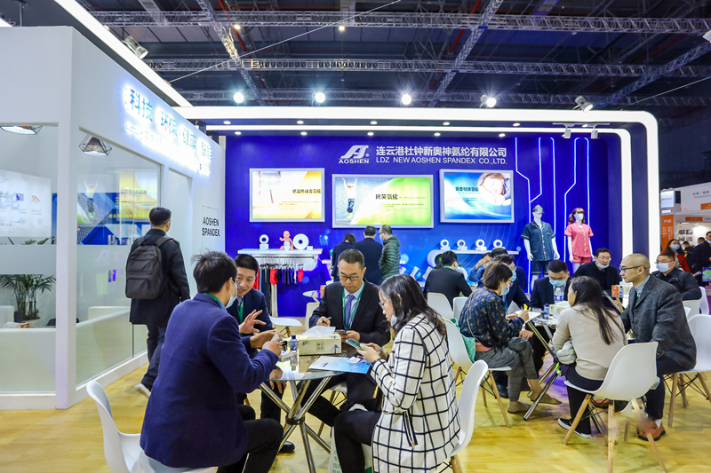 在經歷了新冠疫情的肆虐之后,綠色健康成了人們共同的追求,在此背景下中國國際紡織紗線(春夏)展覽會應運而開,健康、綠色、環保被推為本屆展會的主題,抗菌防護產品更是成為與會人士的共同啊焦點。連云港杜鐘新奧神氨綸有限公司致力于差別化功能性新產品的開發,產品連續五年入圍/入選“中國纖維流行趨勢”,此次展會攜銀系抑菌氨綸產品參展,并從彈性纖維產品步入健康防護纖維產品之列。展會期間杜鐘新奧神氨綸的展位吸引大量專家、客戶、觀眾駐足交流,在“百纖爭艷”中獨樹一幟。