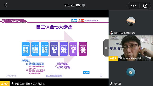 近日,氨綸公司全面落實疫情防控與復工復產“兩手抓”。疫情當前,為了避免培訓人員集聚,公司采取網絡授課的方式開展培訓,組織廣大職工開展了線上TPM培訓活動。