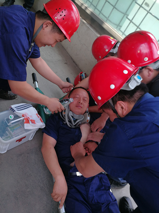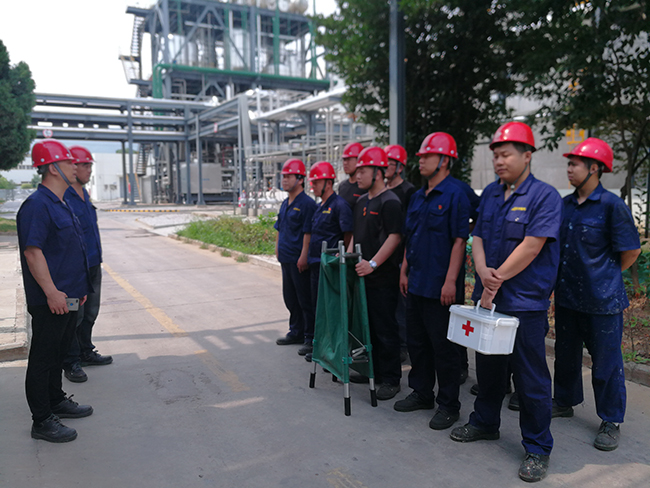 安全生產月期間,各生產部門分別組織了“高溫中暑”“甬道爆燃”“消防應急疏散”“化驗室噴燈起火”“天然氣泄漏”等現場處置方案演練。安全部組織30余名新員工進行消防知識培訓和現場滅火演練。通過一系列現場處置方案的演練,增強了員工的安全意識,檢驗了現場應急處置方案的可操作性和實效性,提高了生產一線員工面對突發事件的處理能力。