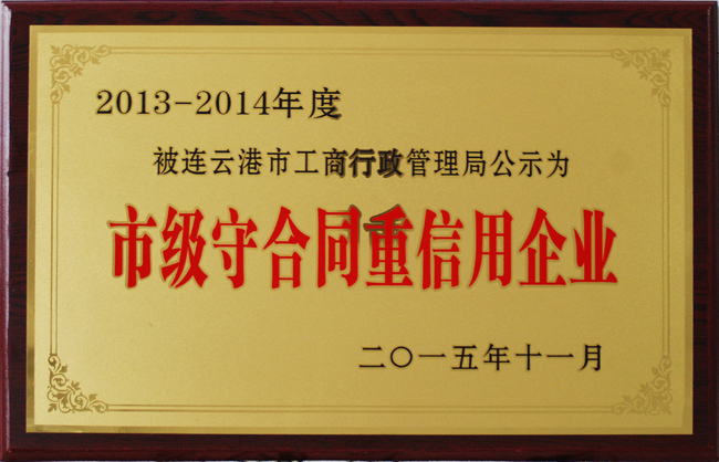 “人無信不立,事無信不成”,近期,氨綸公司被連云港市工商行政管理局公示為“市級守合同重信用企業”。