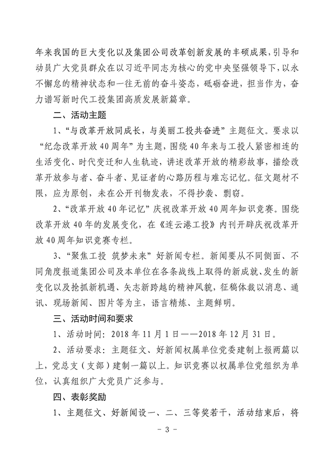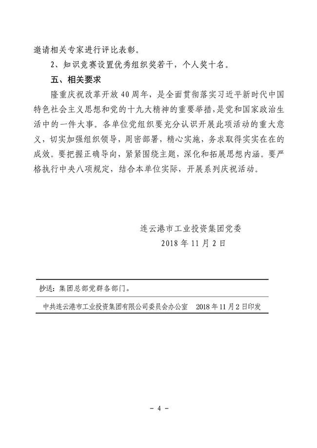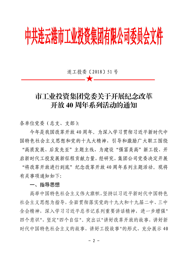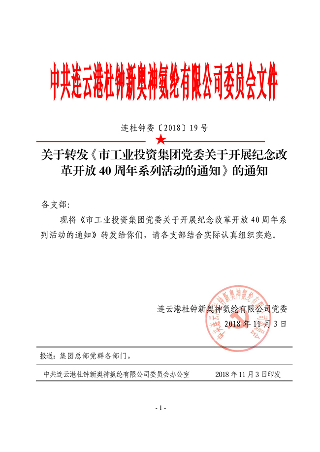 關于轉發《市工業投資集團黨委關于開展紀念改革開放40周年系列活動》的通知