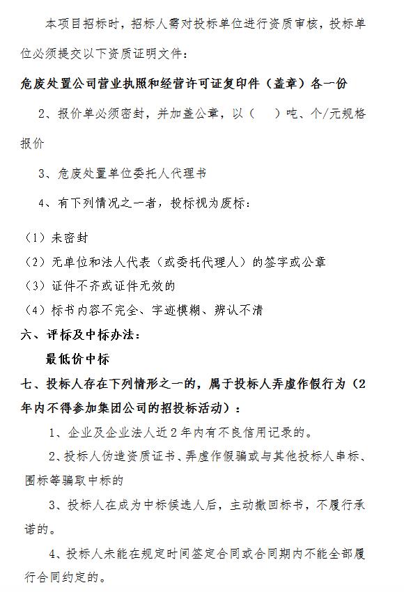 危險(xiǎn)廢物處置招標(biāo)公告