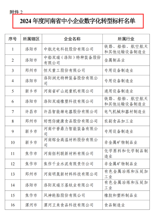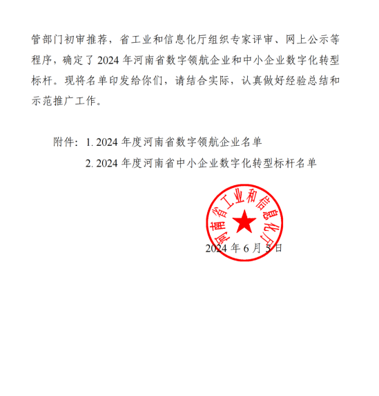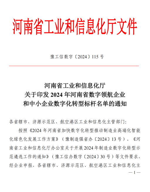 河南省省級中小企業數字化轉型標桿企業