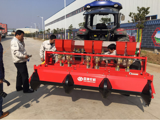 唐河縣土地面積250多萬畝,花生種植面積60多萬畝。為了推進唐河花生種植面積能夠進一步擴大,縣政府指示依托縣農機產業園亞澳農機生產、研發專門用于花生種植、收獲的機械。亞澳今天投放市場的花生精量播工作效率相當于60人的工作量,已成為春耕的主力軍。在上屯鎮演示會現場,隆隆的機聲中,四臺不同規格的花生精量施肥播種機同時作業。所到之處,能夠一次性完成播種、施肥、起壟等多道工序,實現了多壟多行寬幅聯合播種作業。