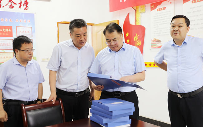 在大新農(nóng)場黨支部黨員活動室,戴書記與支部負責同志攀談交流,通過看現(xiàn)場、查臺賬、詢問題,詳細了解了大新支部黨員強基項、創(chuàng)優(yōu)項“1+1積分制管理”等工作情況。他指出,要貫徹新時代黨的建設總要求和新時代黨的組織路線,深化黨支部標準化規(guī)范化建設,扎實開展黨史學習教育和“兩在兩同”建新功行動,落實好“三會一課”等基本制度,進一步建強黨在基層的戰(zhàn)斗堡壘,引導廣大黨員傳承偉大建黨精神,做新思想的堅定信仰者和忠實實踐者。