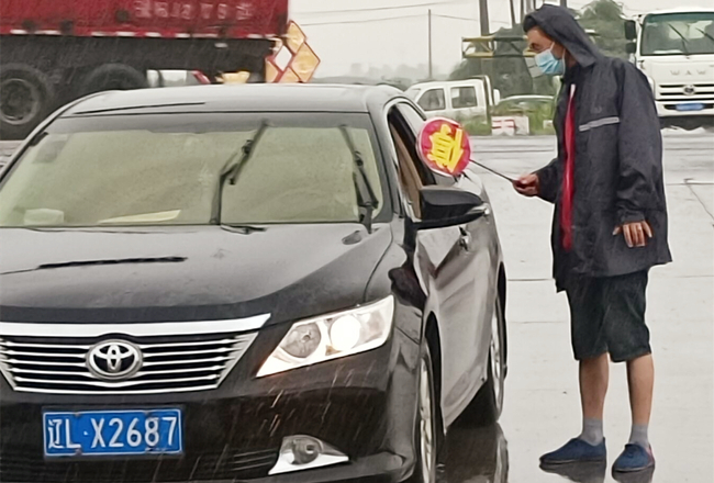 港城接連的暴雨,增加了戶外卡口執(zhí)勤的難度,為做到逢車必查,執(zhí)勤人員冒雨進(jìn)行檢查,雖然穿有雨衣,打有雨傘,衣服仍被淋濕,即便衣服濕透也阻擋不了他們堅(jiān)守在防疫一線的決心,他們是風(fēng)雨中最美的“守門人”。