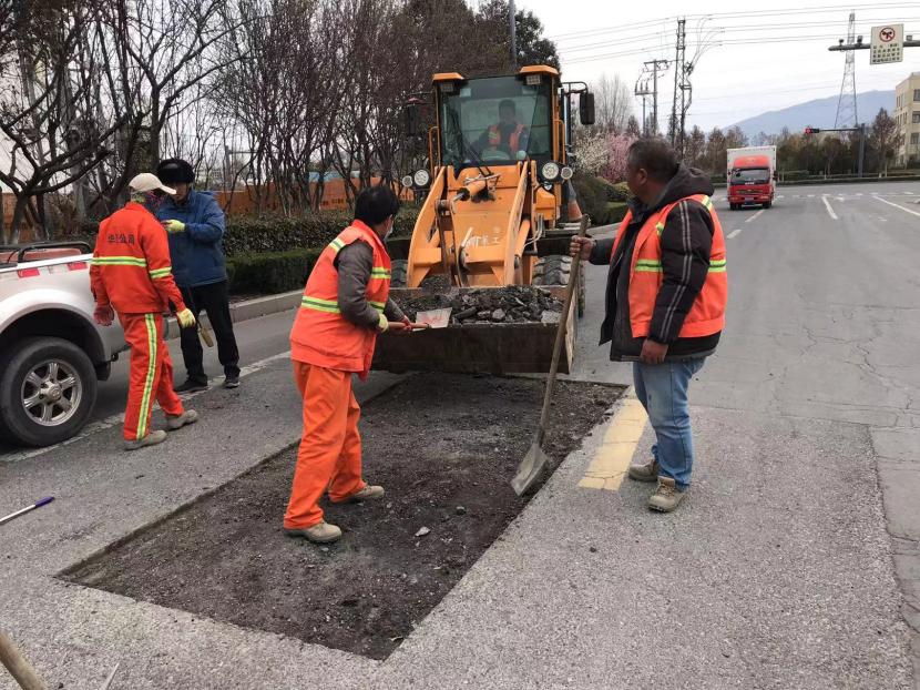 服務大局,確保業務工作取得新實效。為打造和諧統一、美觀整潔的城市環境,盛達市政分公司從排查到修復,全覆蓋式做好轄區內道路設施養護修復工作,一季度順利完成綜合保稅區內云陽路和云杉路、安泰路、242省道等路段瀝青路面修復累計約13000平方;轄區廣告畫面工程完成約2500平方;修復安裝路牙石約200米;轄區道磚鋪設約500平方;完成環湖路拆除路燈桿31根、廣告牌2個、治安監控桿1根;以及完成隔離墩、廣告牌、路燈桿的扶正和道磚修補等其他市政零星維修工作;并順利承接中科院瀝青道路鋪設20000㎡、路牙石安裝6000米、人行道道磚鋪設1000㎡、路燈桿翻新190套和智能化監控安裝等工程,有效推動公司高速發展。