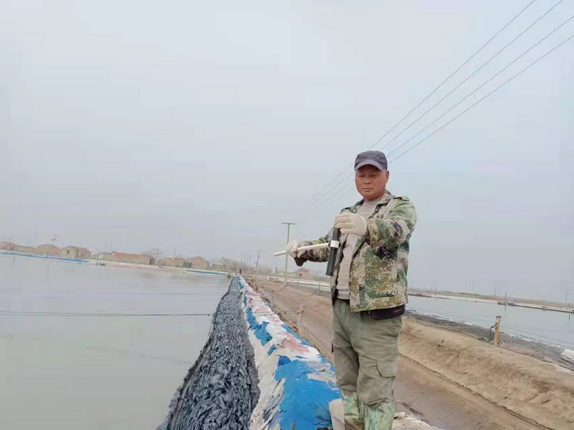 2021年,他服從公司生產機制的轉換,被安排到海濱三組18號灘作為領灘手,負責鈣液生產。為了不浪費每一毫米的蒸發量,每天天剛蒙蒙亮,就能看見他在縱橫阡陌的鹽田間穿梭,根據灘田結構、針對不同季節確定走水路線,每天重復著調節鈣液、修整溝堰、修補塑布的工作,遇到大雨,他就不回家,守在灘上,及時把鈣液按照不同濃度引進鹵臺、鹵窖,雨水結束,第一時間把灘面淡水排掉,將鈣液回引進行晾曬。在生產面積僅有311畝的情況下,他每天要走3-4萬步,不僅對他自己的生產單元,對整片鈣液生產單元了如指掌,有多少閘門,多少電線桿,都了然于心。全年下來,生產鈣液28000方,在12個鈣液生產單元中名列前茅,領先超9000方,實至名歸的生產標兵。