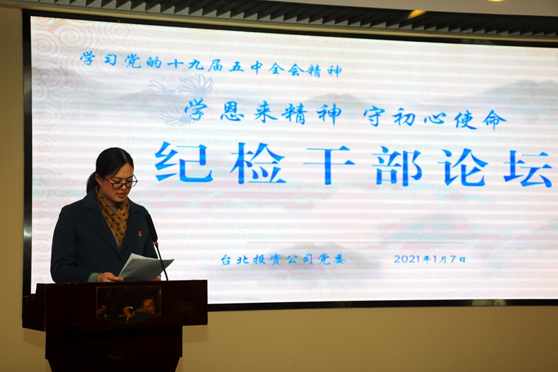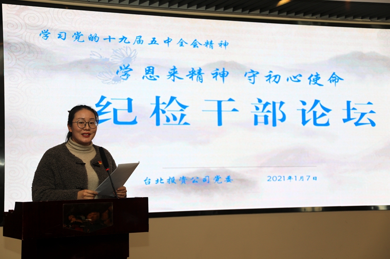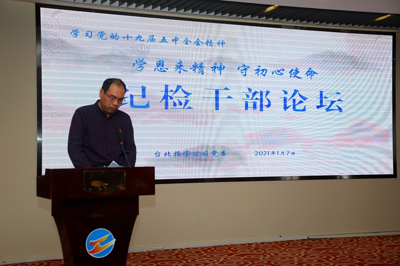 “感受偉人風(fēng)范,踐行初心使命……”從臺北投資公司十樓會議室里傳來鏗鏘有力的演講聲。為深入推進“學(xué)恩來精神、守初心使命”專題教育活動,鍛造忠誠干凈擔當?shù)?/span>紀檢干部隊伍,1月7日下午,公司舉辦紀檢干部專題大講堂。公司領(lǐng)導(dǎo)班子成員,各單位、部門中層副職以上管理人員參加了活動。